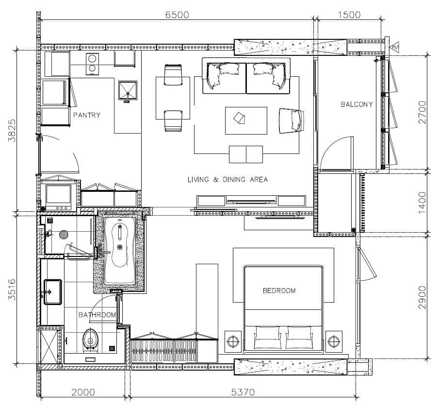 1 Bedroom / 1 Bathroom / 43.42 Sqm